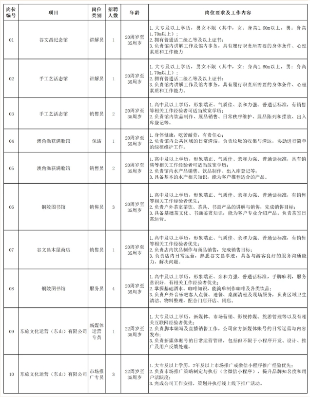 2.以上岗位待遇按东旅文化运营(东山)有限公司薪酬制度执行。