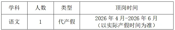 2025-2026学年,我校因工作需要,拟招聘1名非在编合同教师(顶岗),具体岗位如下: