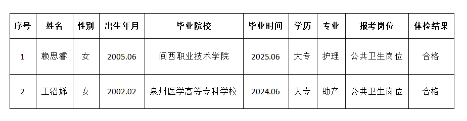 附件:长汀县涂坊中心卫生院2026年第一轮公开招聘编外卫生专业技术人员体检结果及拟聘用人员公示